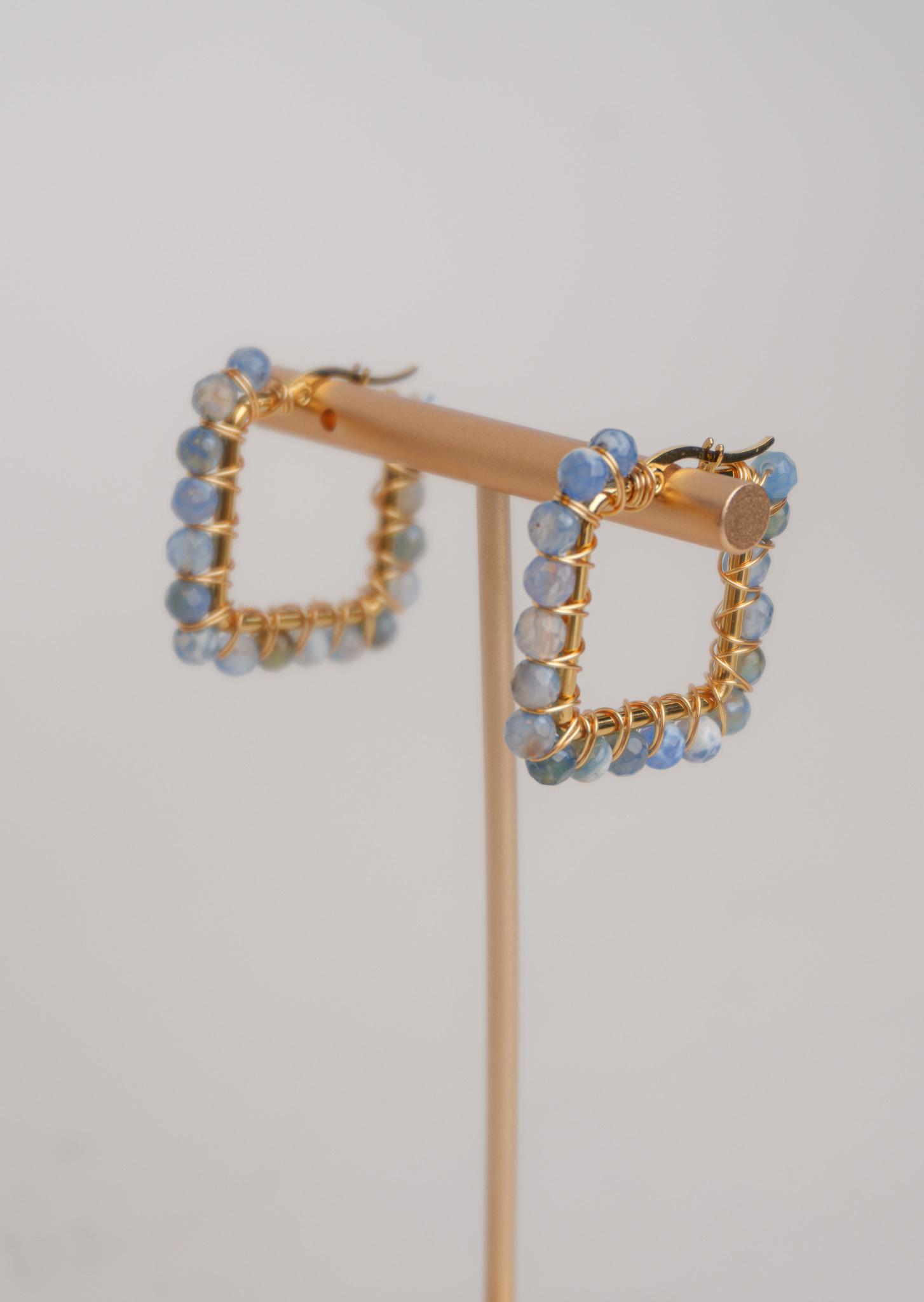 Sumarlegir eyrnalokkar úr stáli með náttúrulegum Agate orkusteinum.